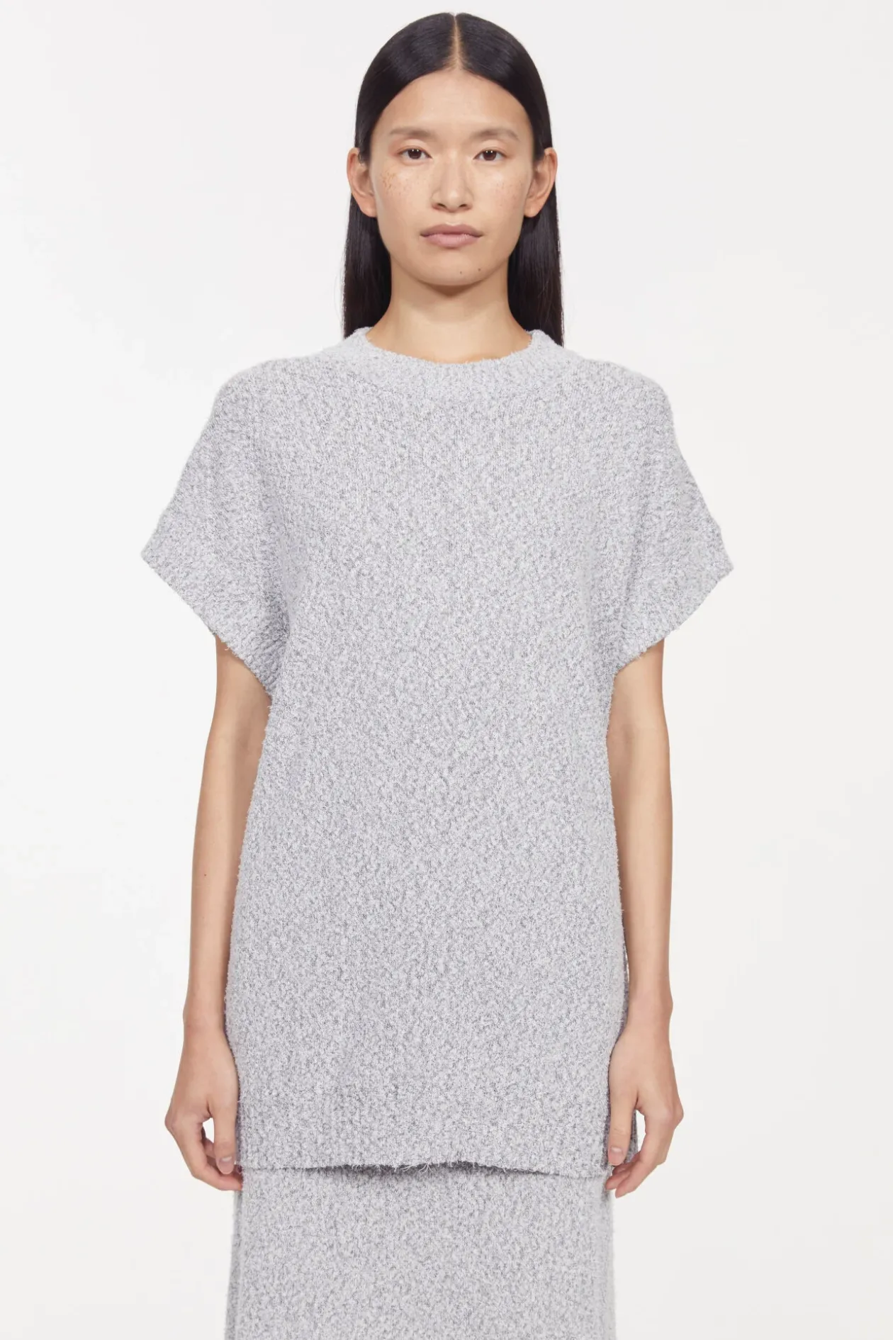 The Slouchy Claire Sweater Adds Both Texture And Ease To Outfits. It Is Knit From A Cotton-Mix Bouclé With A Mélange Effect To An Oversized Silhouette, And Is Elongated At The Hemline. Style With The Matching Flora Skirt For A Look That Is As Pulled Together As It Is Comfortable.