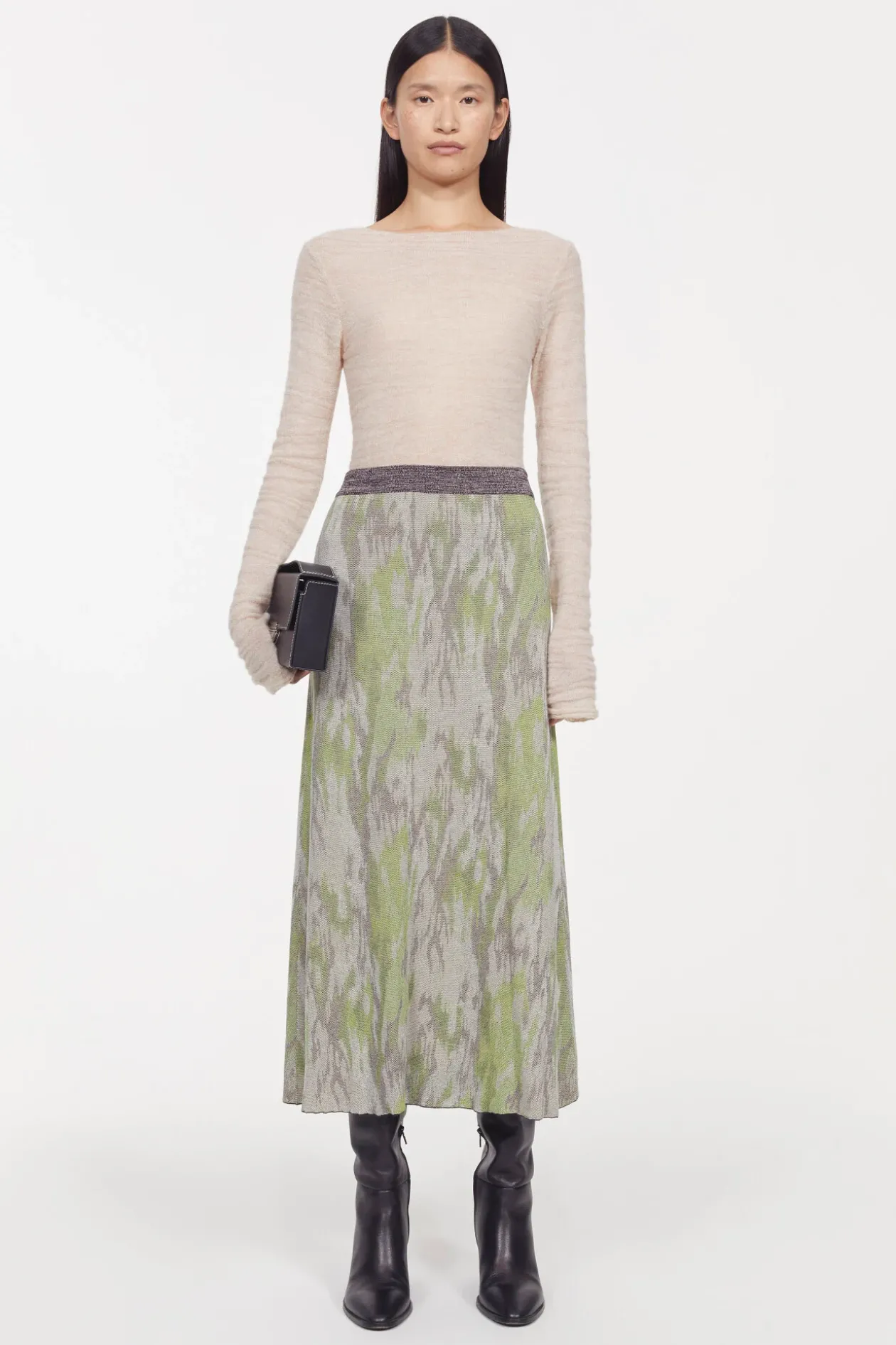 The Soft Tones And Fluid Shapes That Inform The Season Are Seen In The Jacquard Flora Skirt. Made From Fsc-Certified Viscose, It Gently Flares From Its Elasticated Waistband. Pair With The Matching Minju Sweater For An Expressive Take On Pastels.