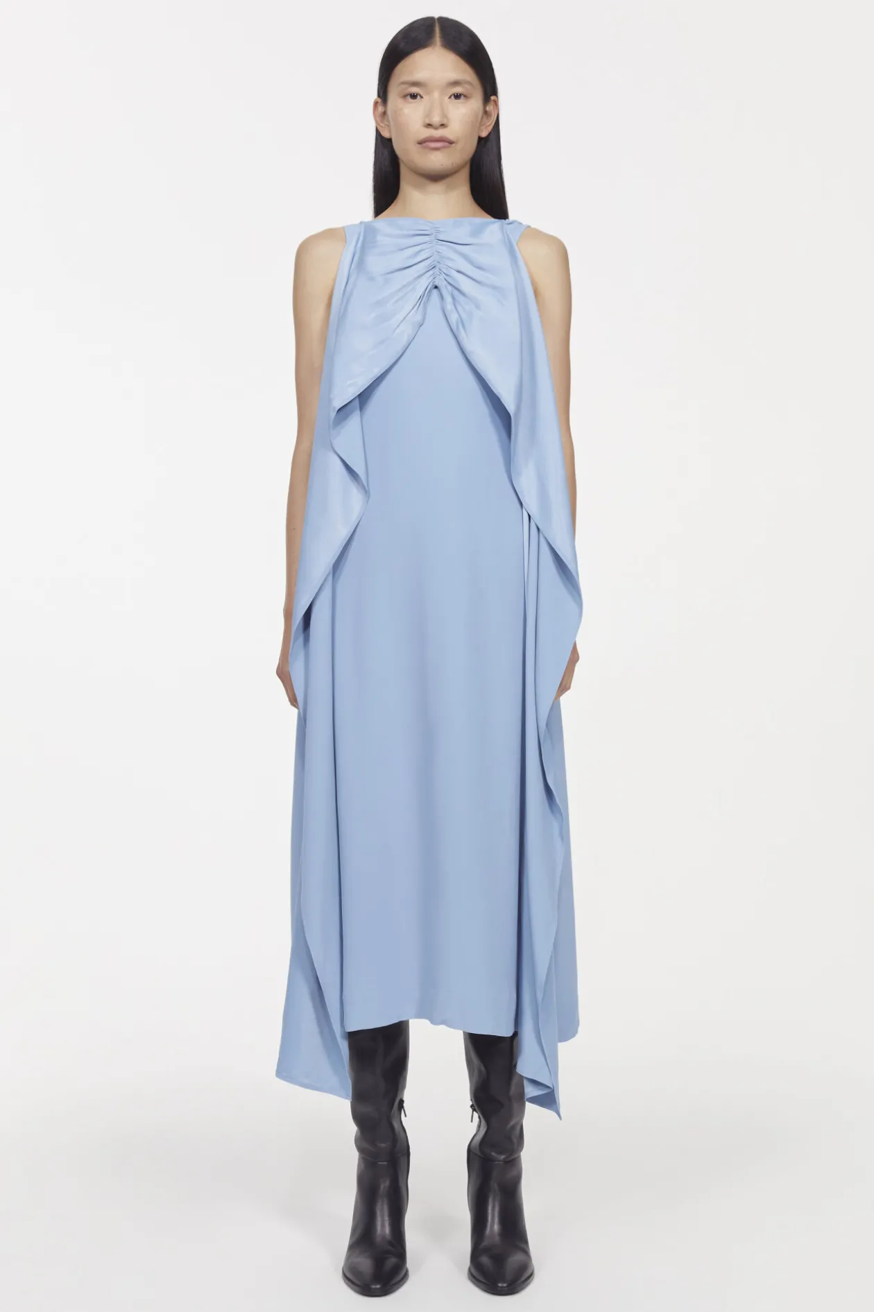 The Iridea Dress’ Seemingly Endless Versatility Will Carry You Through Seasons To Come. This Fully Lined Style Cascades Loosely Down The Figure, And Is Shaped To A Sleeveless Silhouette With A Mid-Calf Hemline. An Attached Scarf Detail Allows You To Transform Its Shape: Wear It Loosely Flowing Over Your Shoulders, Tie It Across The Bust Or To The Back, Or Pull The Ties To The Neckline For A Cape Effect.