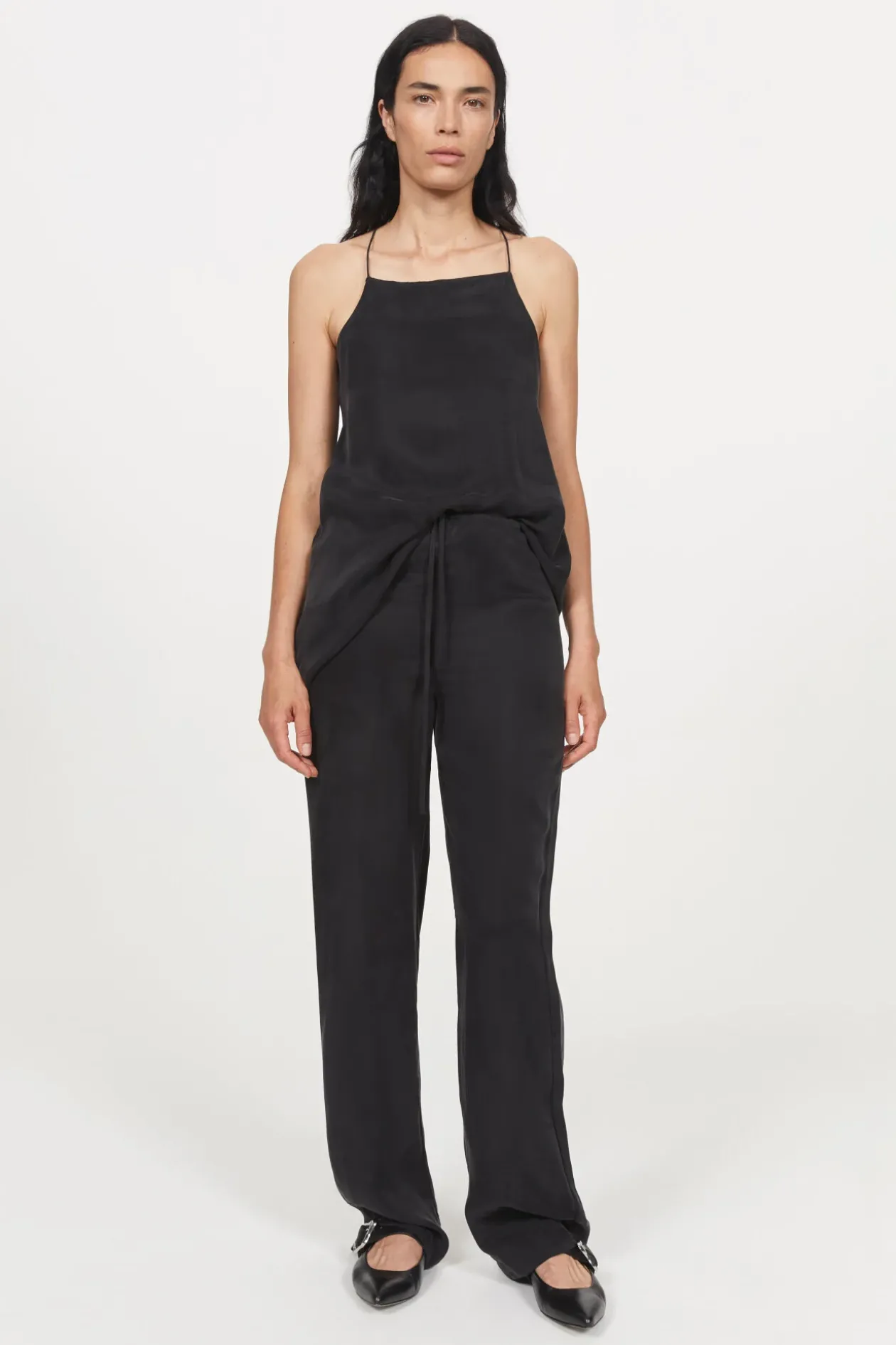 The Lunara Pants Are Made From A Viscose And Cupro Twill With A Sandwashed Finish That Lends It A Silken Finish With An Elegant Drape. This Relaxed Design Falls To Straight Legs, And Can Be Adjusted At The Mid-Rise Waist With Adjustable Drawstrings.