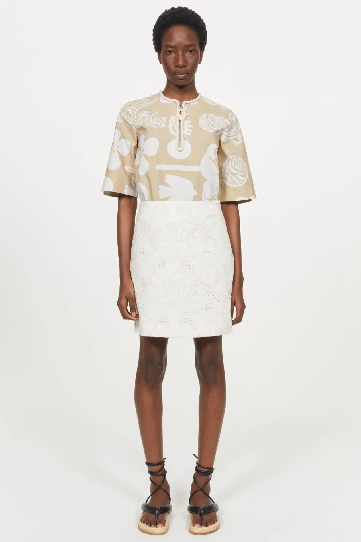 Add Texture To Summer Outfits With The Piano Skirt. This Fully Lined Style Is Made To An A-Line Shape From An Organic Cotton Fabric That Is Exclusive To Rodebjer. Its Clean Silhouette Creates A Canvas For An Embroidered Version Of The Seasonal Cosmic Motif, And It Fastens To The Side With A Discreet Zip Closure.