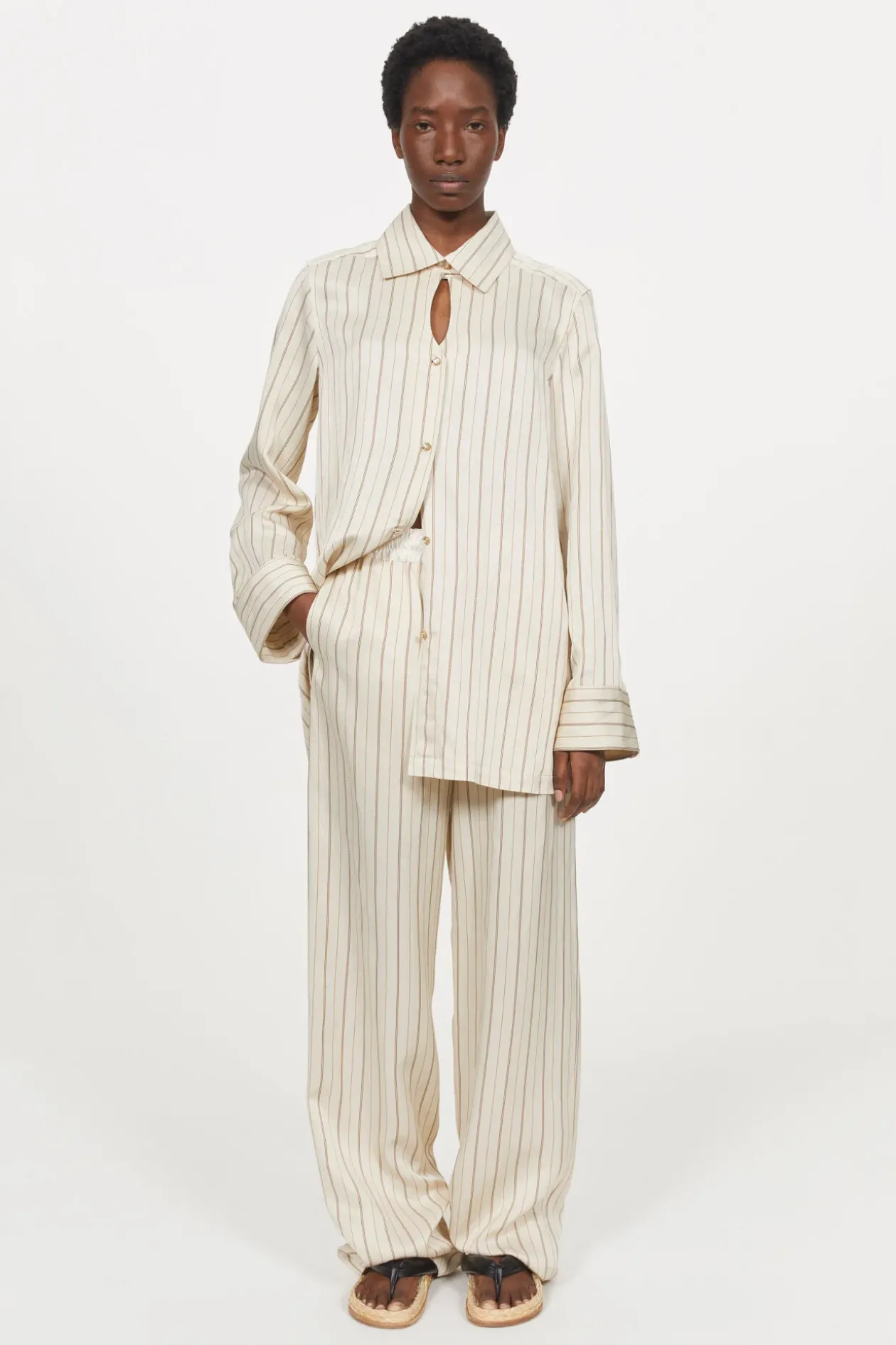 The Beautiful Handle Of The Simone Pants Adds A Refined Mood To This Relaxed Style. Made From A Linen Blend, This Striped Design Has A Loose Fit, With A Dropped Crotch, Slanted Pockets And Partial Lining. Adjust Yours At The Drawstring Waist, Which Is Rendered From Custom “R” Logo Fabric.