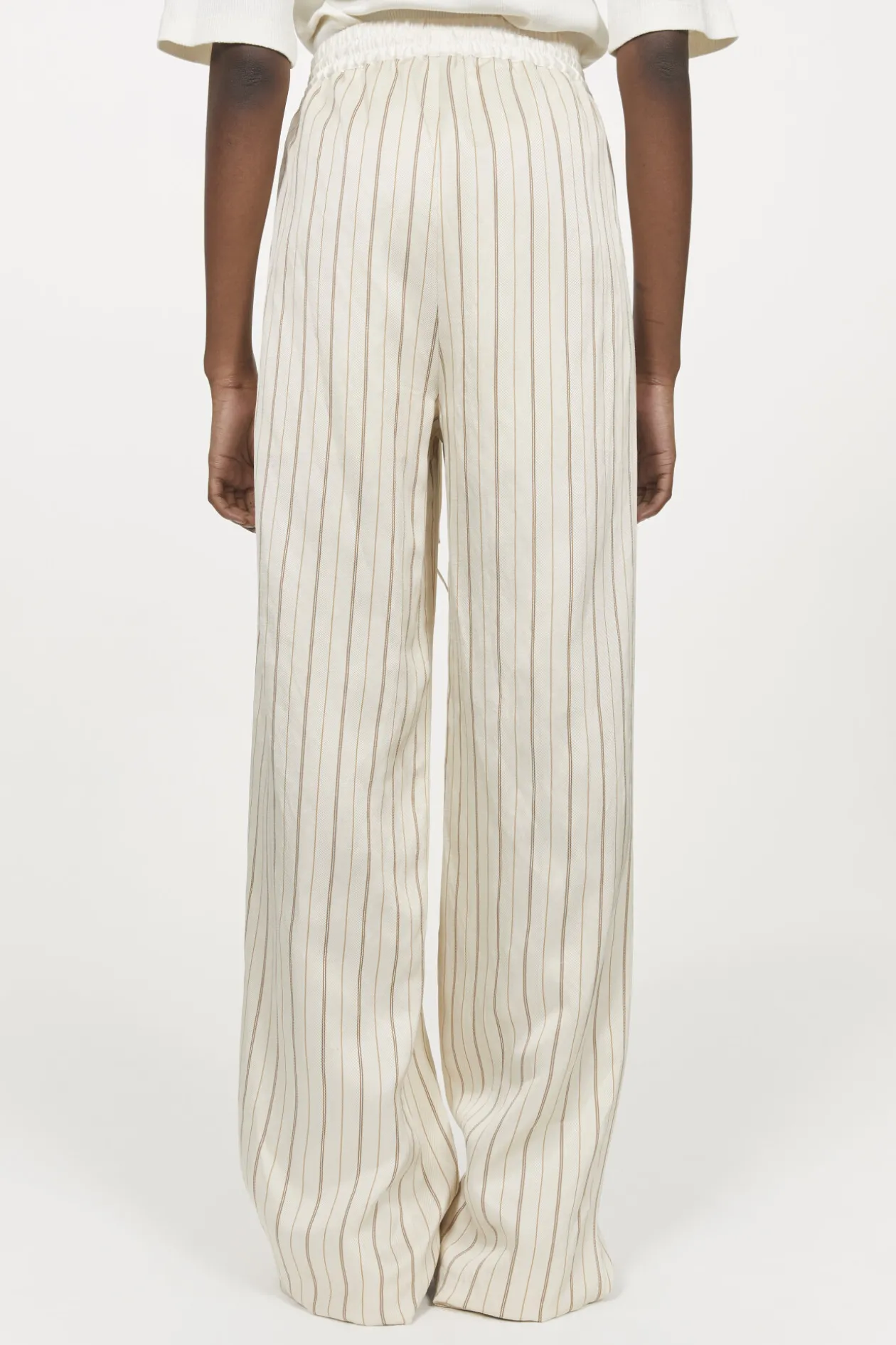 The Beautiful Handle Of The Simone Pants Adds A Refined Mood To This Relaxed Style. Made From A Linen Blend, This Striped Design Has A Loose Fit, With A Dropped Crotch, Slanted Pockets And Partial Lining. Adjust Yours At The Drawstring Waist, Which Is Rendered From Custom “R” Logo Fabric.