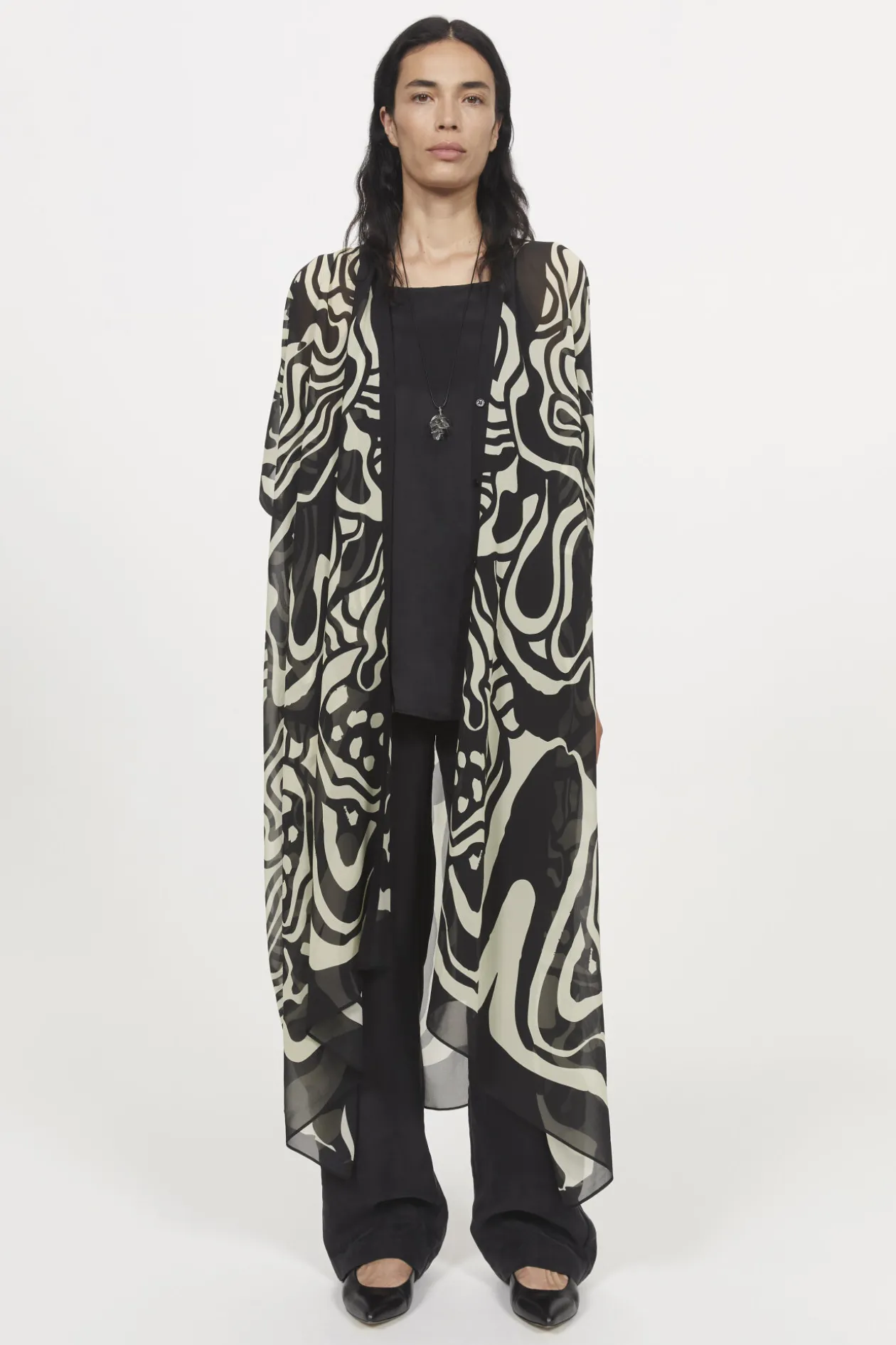 Rodebjer’S Exclusive Cosmic Bloom Print Swirls Across The Flowing Agave Caftan. Made From Lightweight Silk Georgette, This Oversized Style Fastens With A Strip Of Buttons At The Front, And Drapes Down The Figure From Its Sharp V-Neckline To Its Gathered, Asymmetrical Hemline.