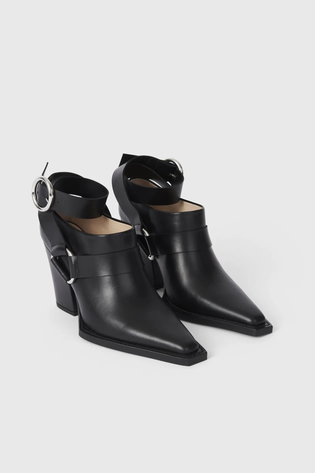 Set On A Leather-Wrapped Stacked Block Heel, Appaloosa Are Minimalistic Cowboy Ankle Boots Crafted In Smooth Leather. Ankle Straps With Silver D Ring Hardware Keep The Mules Firmly On Your Feet, Whether You’Re Running Errands Or Enjoying Dinner With Friends. The Pointed Toe Looks Great Peeking Out Beneath Wide Leg Pants.