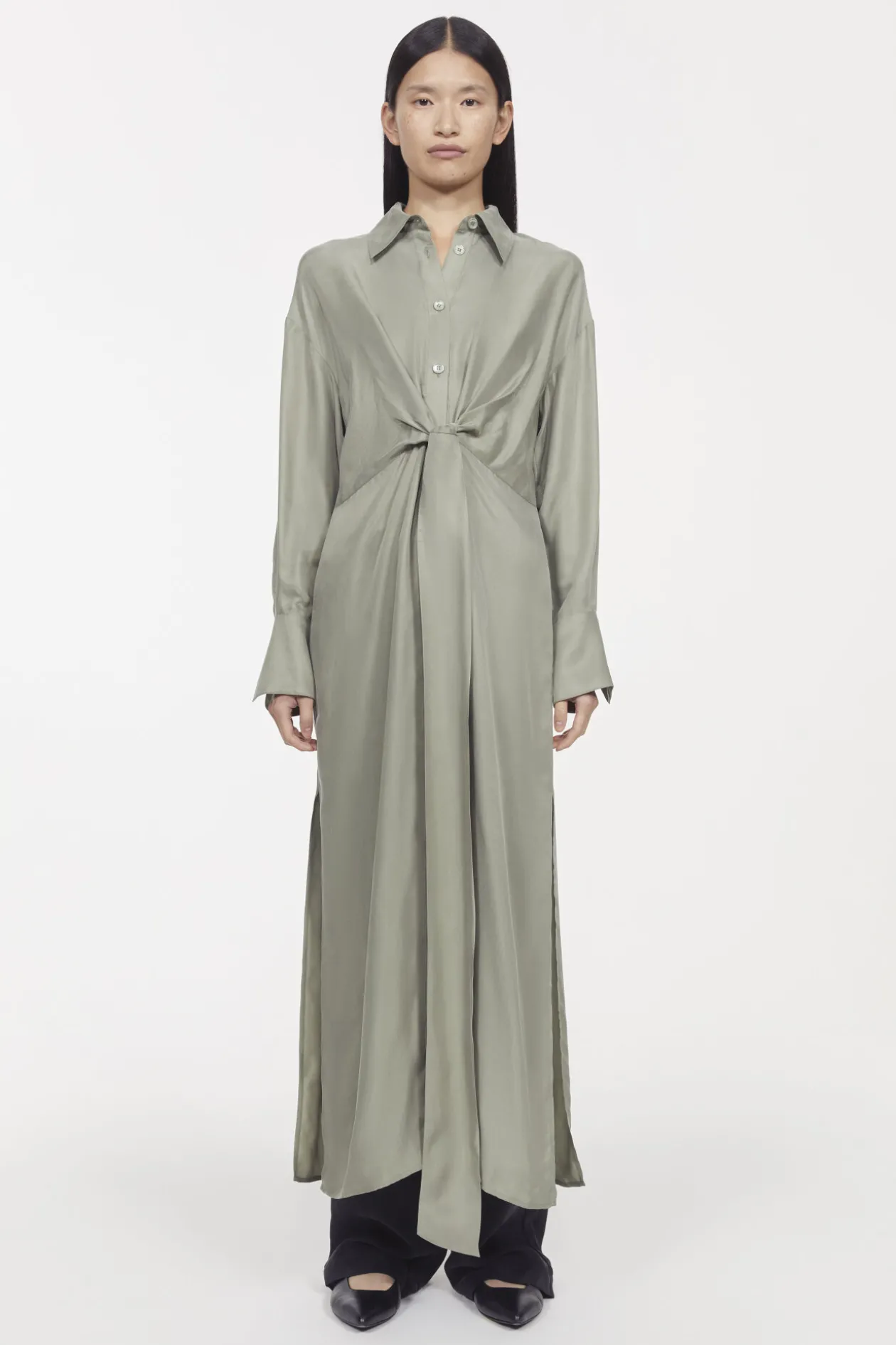 A Study In Soft Contrasts, The Apple Peach Design Is A Shirt Dress That Is Crafted From Sandwashed Twill That Ensures A Luxurious Handle. The Long-Sleeved Style Has A Classic Button-Down Front, And Self-Fastening Ties At The Waist That Create An Artful Gather Below The Bust. Wear Yours With A Pair Of Pointed Flats.