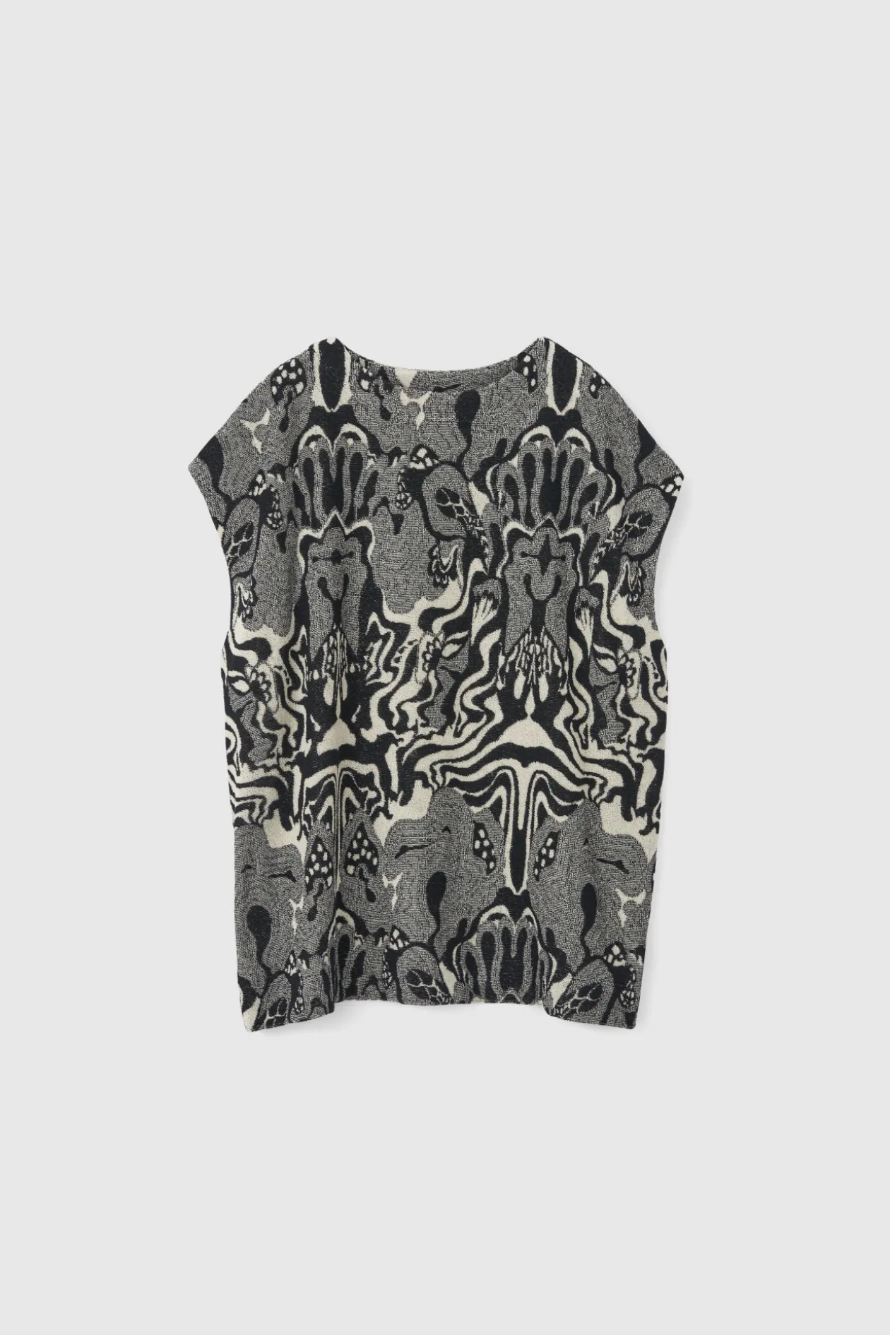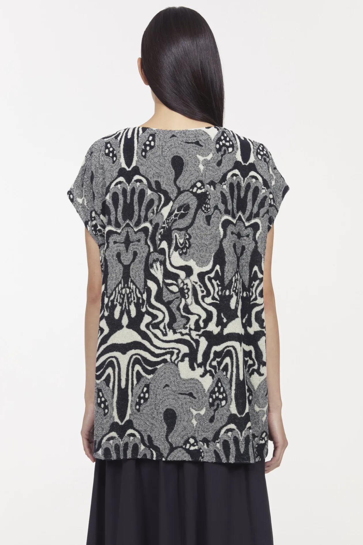 Shaped To A Slouchy Silhouette, The Claire Top Lends Visual Interest And Ease To Outfits. Made From Japanese Organic Cotton Terry With A Swirling Jacquard Motif, It Is Knit To A Poncho Silhouette With An Oversized Fit. Style With The Matching Flora Skirt To Evoke An Artistic Impression.