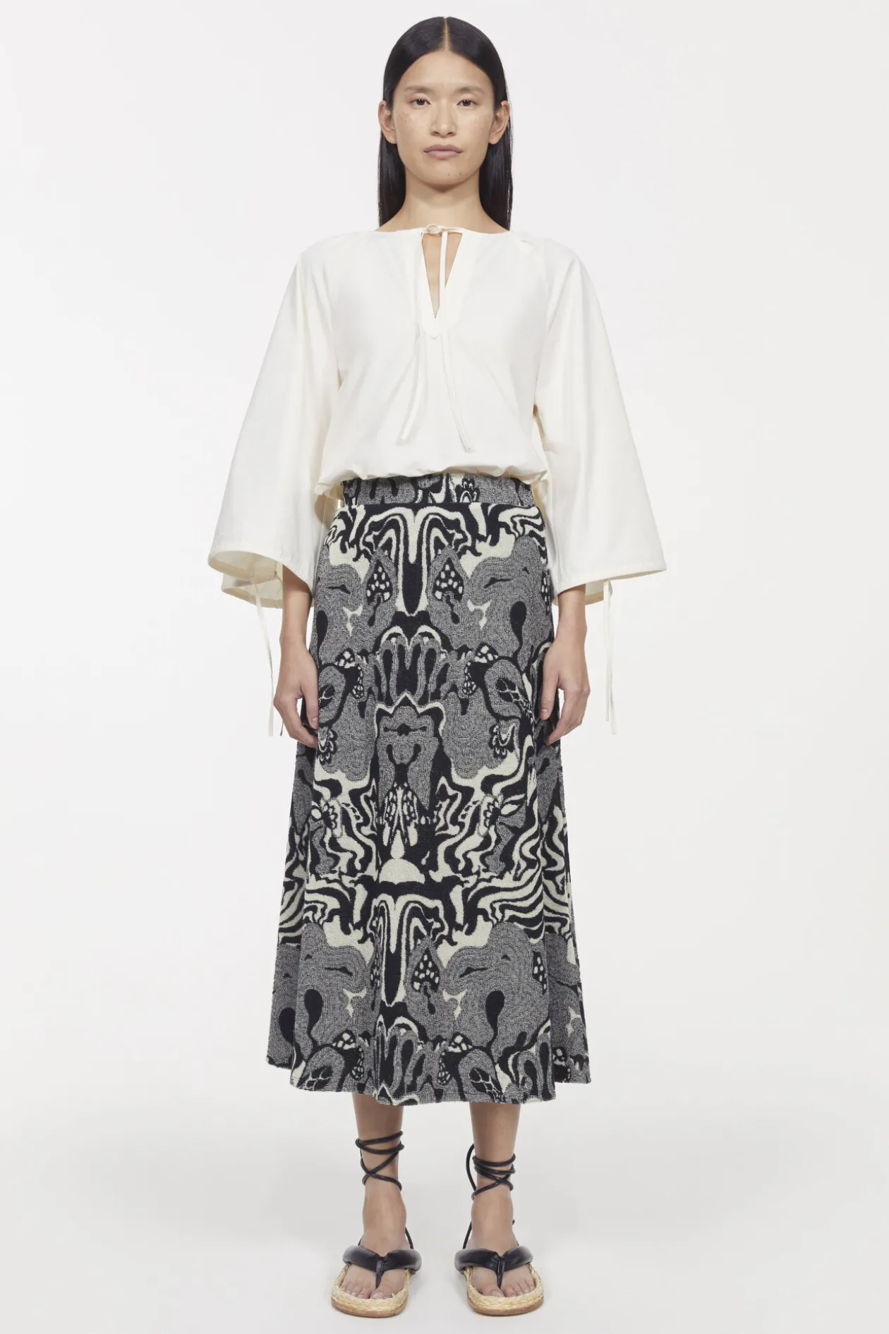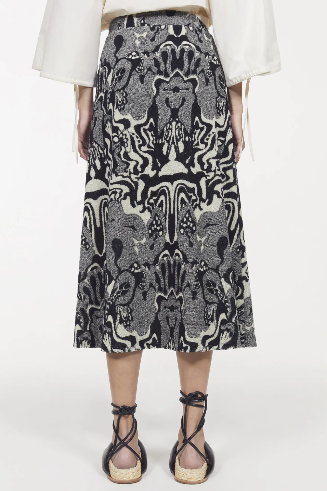 Made From Japanese Organic Cotton Terry, The Flora Skirt Showcases A Surrealist Jacquard Motif Reminiscent Of Ink Drawings. It Is Shaped With An Elasticated Waistband For Optimal Comfort, And Flares Towards Its Ankle-Length Hemline With Ease.