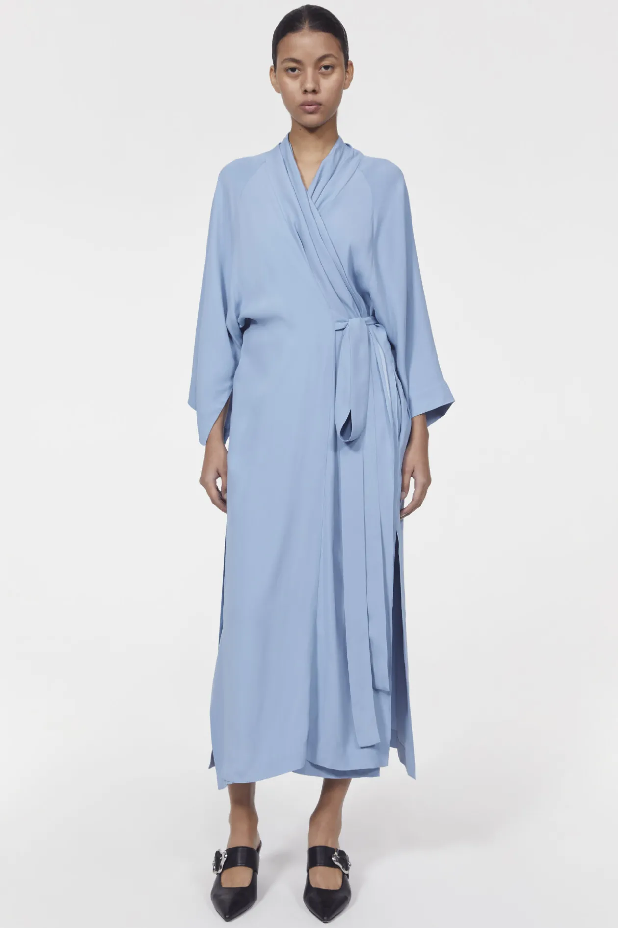 A Signature Rodebjer Design, The Mabelin Dress Explores The Boundaries Between Volume And Drape. Crafted From An Fcs-Certified Viscose That Ensures Drape And Movement, This Piece Is Shaped With Wide Cape Sleeves, Side Slits And A Shawl Collar. A Wrap Closure Allows You To Adjust Its Silhouette To Your Choosing.