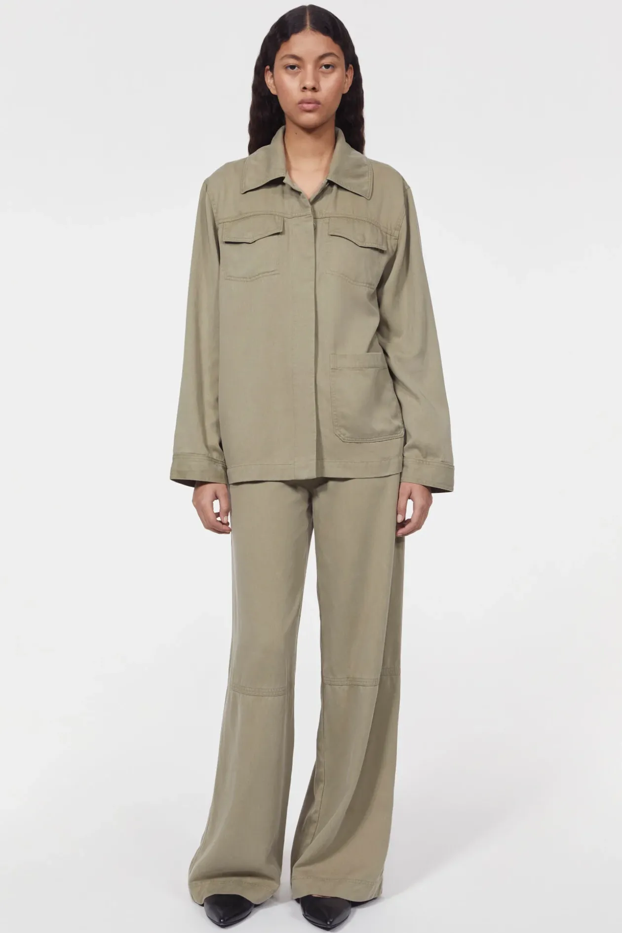 Practical In Silhouette And Tactile In Texture, The Marmise Jacket Is Crafted From Lenzing™ Lyocell With A Medium-Weight Handle. A Concealed Button-Down Front Lends A Clean Finish, And The Boxy Design Is Detailed With Contrasting Topstitching, Patch And Chess Pockets. Layer Over Printed Dresses And Flowing Trousers.