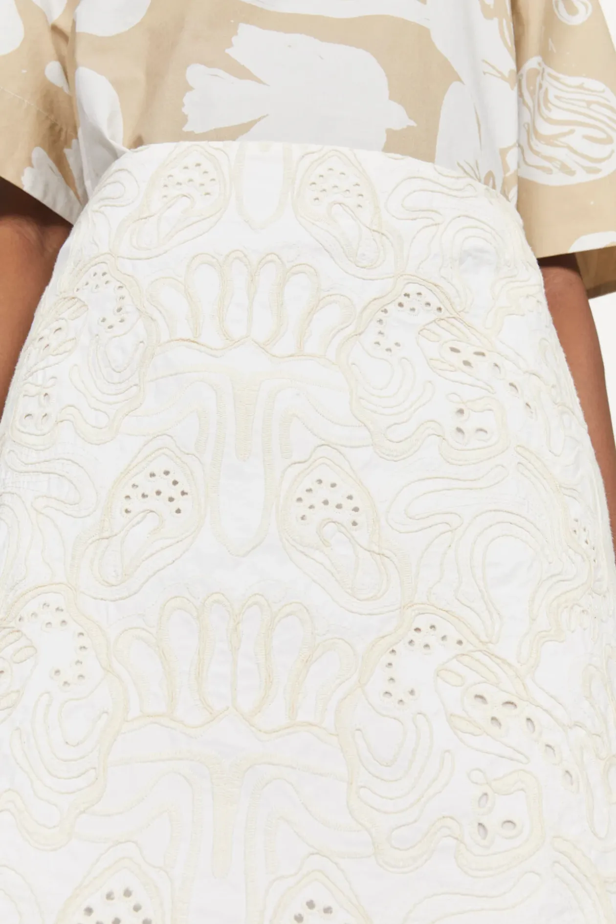 Add Texture To Summer Outfits With The Piano Skirt. This Fully Lined Style Is Made To An A-Line Shape From An Organic Cotton Fabric That Is Exclusive To Rodebjer. Its Clean Silhouette Creates A Canvas For An Embroidered Version Of The Seasonal Cosmic Motif, And It Fastens To The Side With A Discreet Zip Closure.