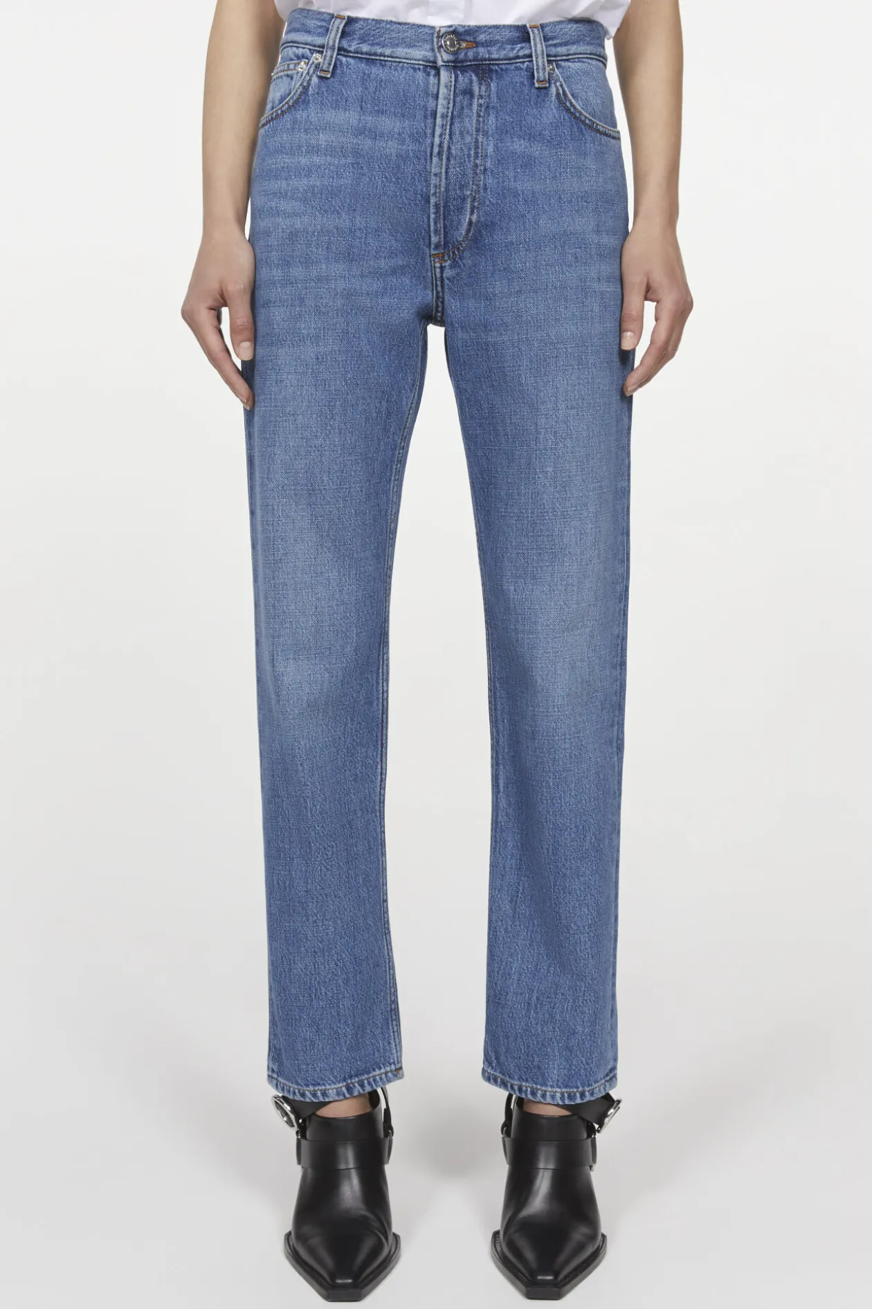The Regular Denim Is A New Fit Cut In 100% Gots-Certified Organic Cotton. Slightly Cropped, They’Re Engineered With A Mechanical Stretch For Increased Comfort. The Denim Are Treated With A Vintage Wash For A Lived-In Look.