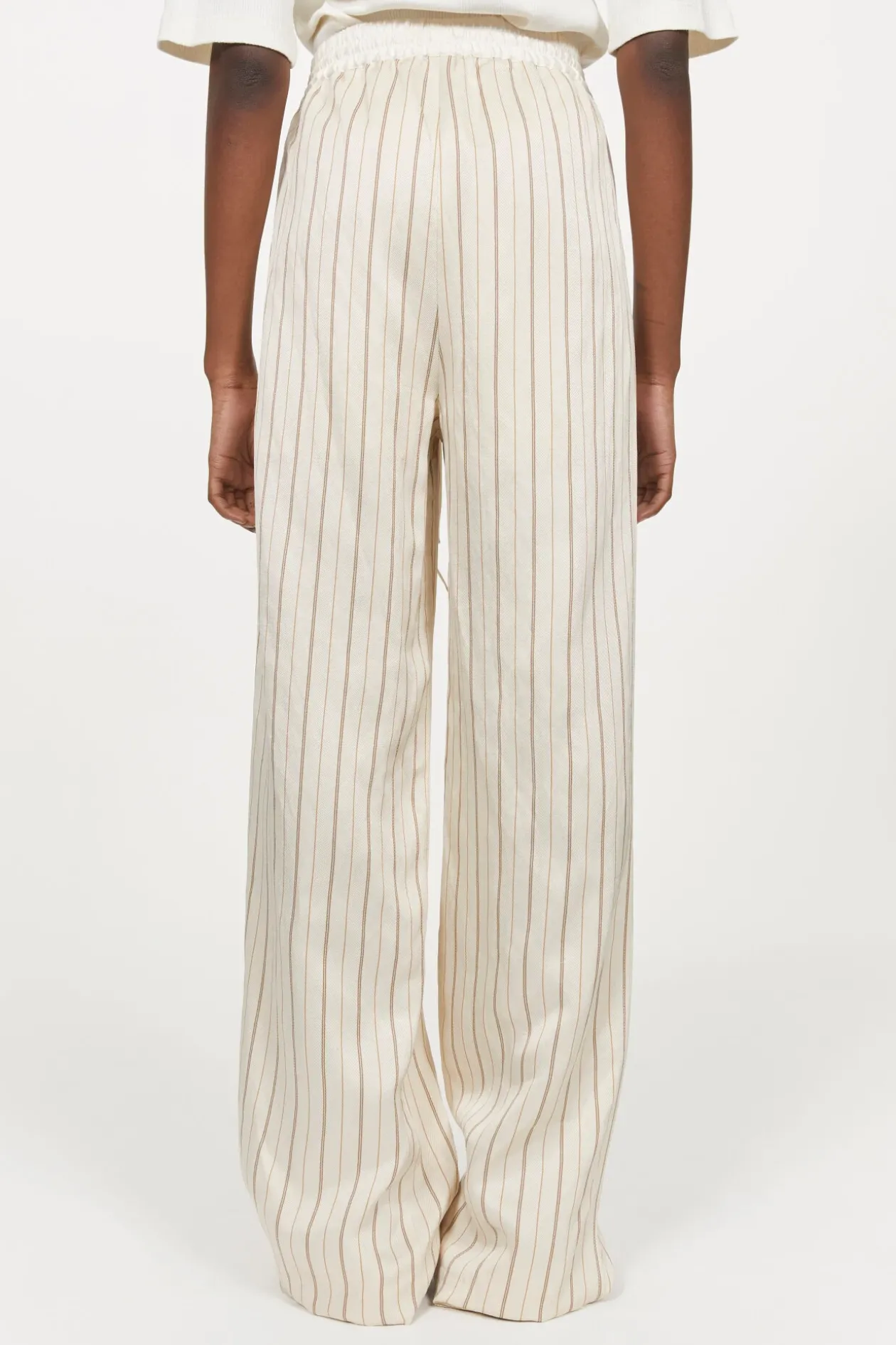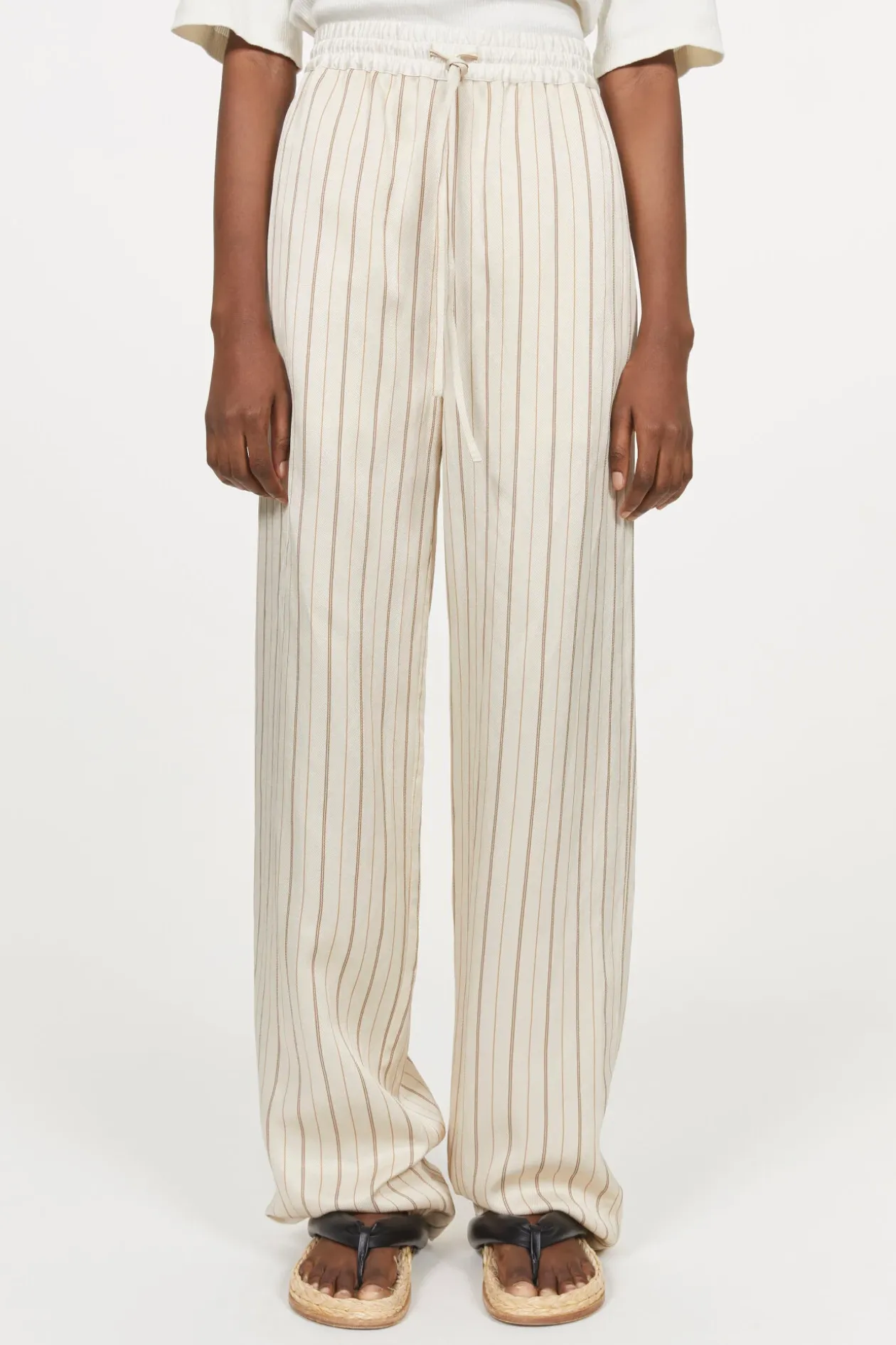 The Beautiful Handle Of The Simone Pants Adds A Refined Mood To This Relaxed Style. Made From A Linen Blend, This Striped Design Has A Loose Fit, With A Dropped Crotch, Slanted Pockets And Partial Lining. Adjust Yours At The Drawstring Waist, Which Is Rendered From Custom “R” Logo Fabric.